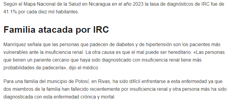 Muertes por insuficiencia renal se duplican en Nicaragua