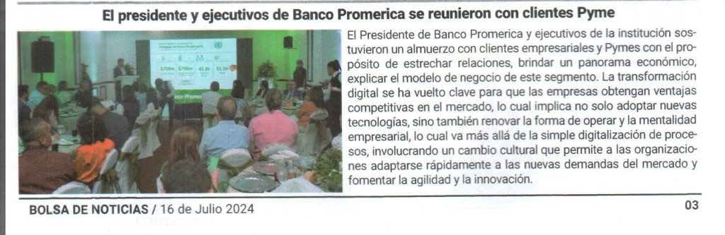 El presidente y ejecutivos de Banco Promerica se reunieron con clientes Pyme