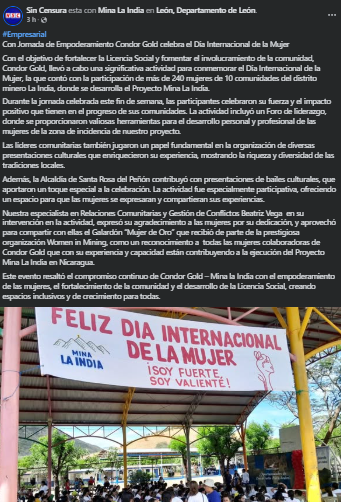 Con el objetivo de fortalecer la Licencia Social y fomentar el involucramiento de la comunidad, Condor Gold, llevó a cabo una significativa actividad para conmemorar el Día Internacional de la Mujer, la que contó con la participación de más de 240 mujeres de 10 comunidades del distrito minero La India, donde se desarrolla el Proyecto Mina La India.