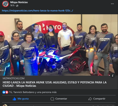 Una nueva apuesta de Hero para Nicaragua«Con la llegada de la nueva Hunk 125R reafirmamos nuestro compromiso de ofrecer soluciones de movilidad innovadoras, accesibles y de calidad para nuestros clientes», expresó Isaac Castro, jefe de marca de Hero Nicaragua. «Esta motocicleta no solo impactará por su desempeño, sino también por su estilo y tecnología, adaptándose perfectamente a las necesidades del motociclista urbano».